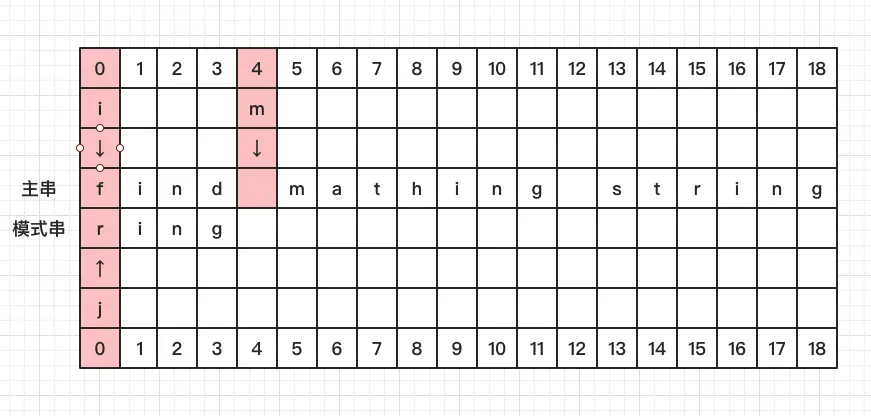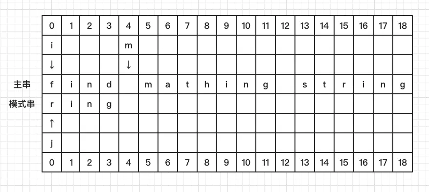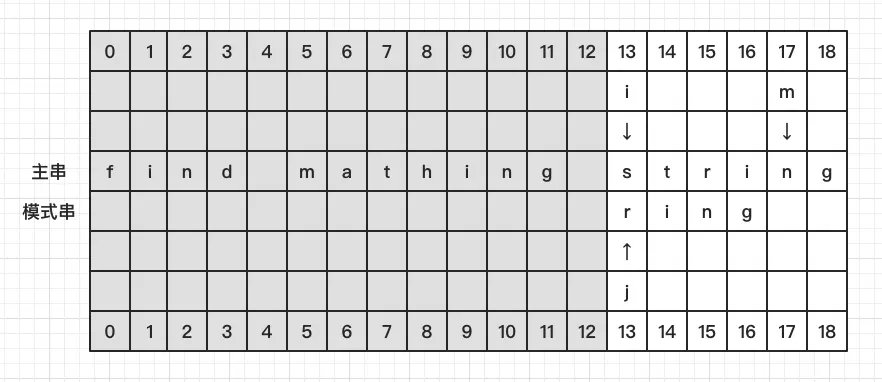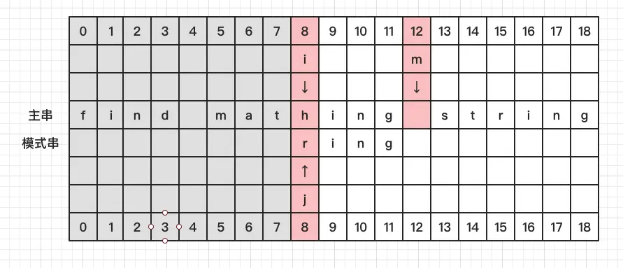 将 P 中的 i 与 S 中的 i 对齐,此时 i = 8, j = 0, m = 12