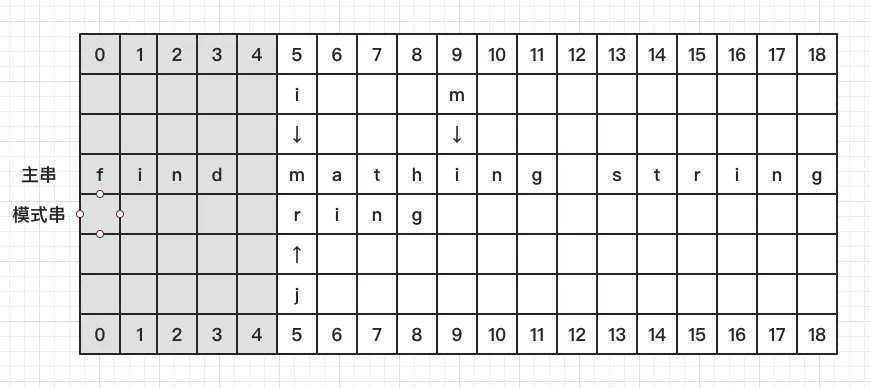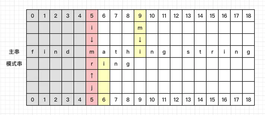 模式串中寻找一个合适的位置- 如果找到,从这个位置开始与