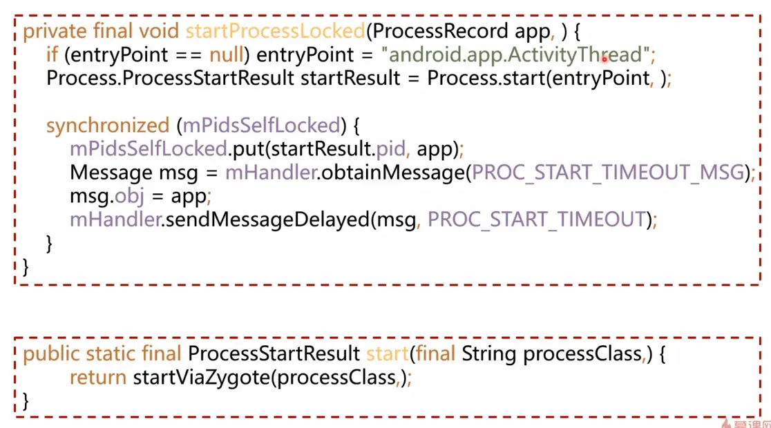- 在父进程里面通过handlerParentProc向AMS通过socket返回子进程的Pid。
