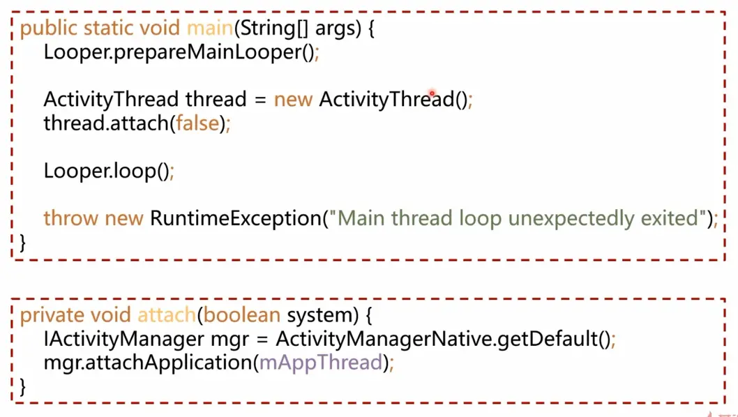- 入口函数做了3件事,1 准备好Loop,2 向AMS报告(将binder句柄注册到AMS),3 开启loop循环。
