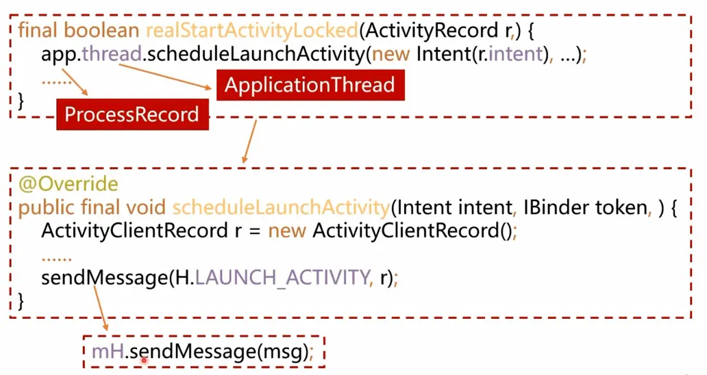 - 主线程在收到Message后,通过发射机制创建目标Activity,并回调Activity.onCreate()等方法。