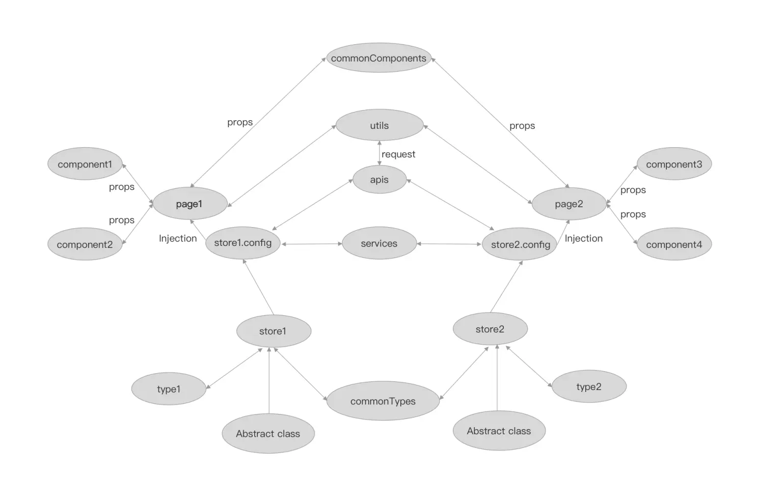例如:component只知道点击某东西及调用page通过props传入进来的函数然后page调用store中的函数。component并不知道函数在page中的操作,page也不知道函数在store中的操作。store调用service也是一样。