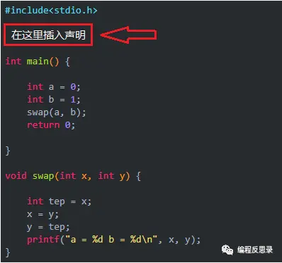main函数执行到调用swap函数的地方的时候,由于我们在声明swap函数的时候并没有指定参数的类型,所以程序会猜测这两个变量的类型为int类型。而在函数定义的时候类型却为double,所以程序就有点“疑惑”了。