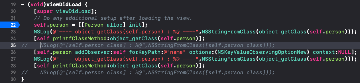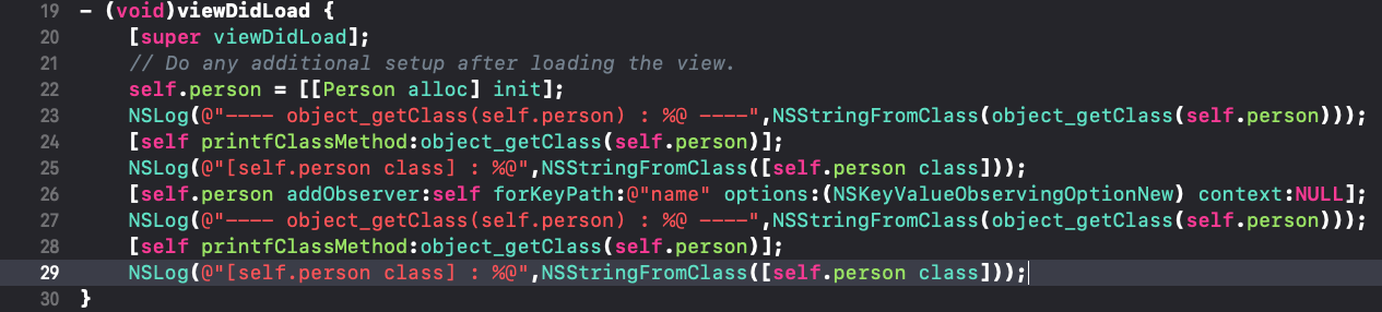 NSLog(@"---- object_getClass(self.person) : %@ ----",NSStringFromClass(object_getClass(self.person)));