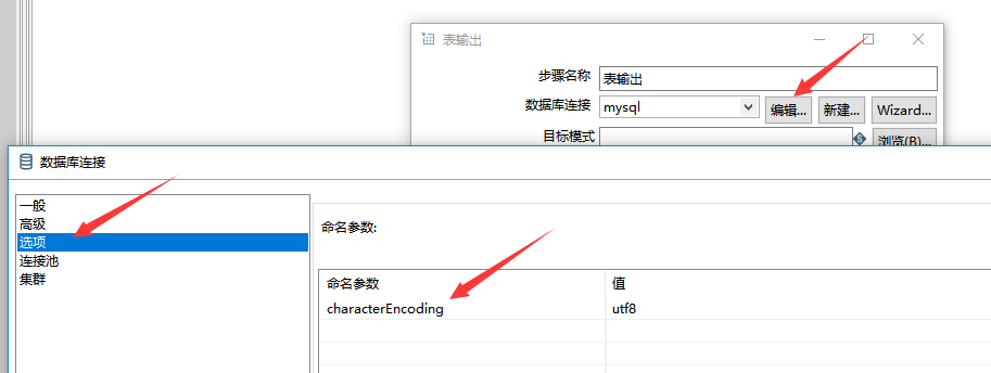 如果导数的时候发生中文乱码,可以点击 编辑 ,选择 数据库连接 的 选项,添加配置项:characterEncoding utf8,即可解决。如下图所示: