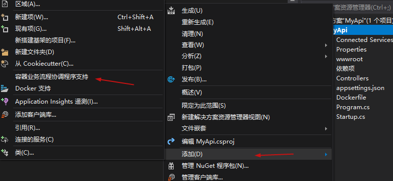 2.项目右键,添加容器业务流程协调程序支持