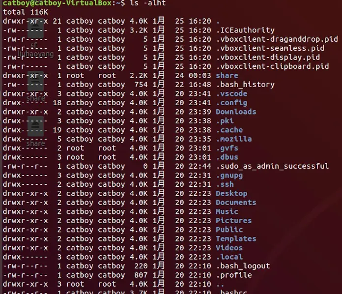 catboy-VirtualBox是我ubuntu运行的电脑名字,因为我是在virtualBox这样的虚拟机运行的,所以我这边就是显示了虚拟机的名字 - 冒号后面第一个
