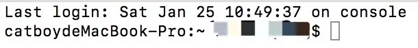 接下来,为了对比的看,这里也放上Mac OS的图形界面命令行工具界面,打开之后,默认显示的一行文字是pc name: ~ username$,和ubuntu略有不同,但其实并没什么区别