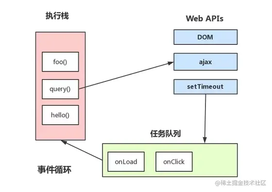 - 异步任务指的是不直接进入JS引擎主线程,而是满足条件时,相关的线程将异步任务推进任务队列(task queue),等待JS引擎主线程上的任务全部执行完毕,空闲时读取这个任务队列执行的任务,例如异步Ajax、Dom事件、setTimeout等。
