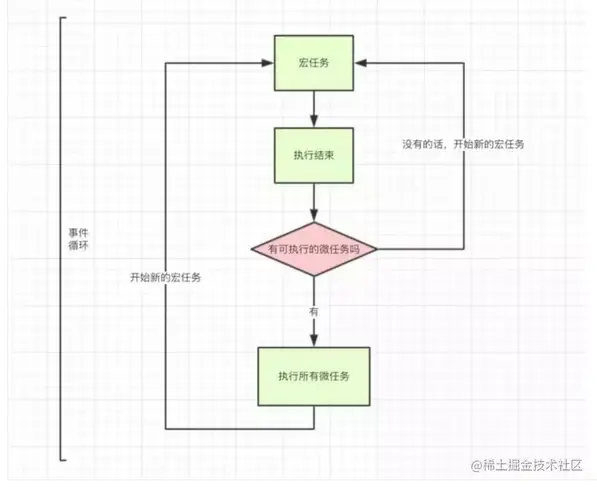 - 执行新宏任务(任务队列中异步任务),再检查是否存在可执行的微任务,如此反复循环。