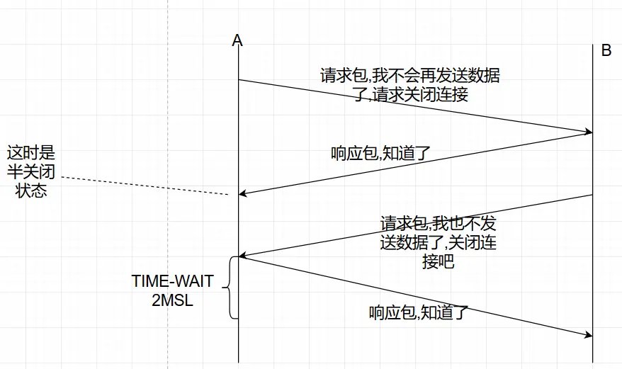 A发送B的响应包后就会进入这个状态,如果B在一定时间内没有收到A的响应包,B会从新发送请求包,同时确保B的请求包自然消亡,防止对下一个使用这个端口的新应用造成影响