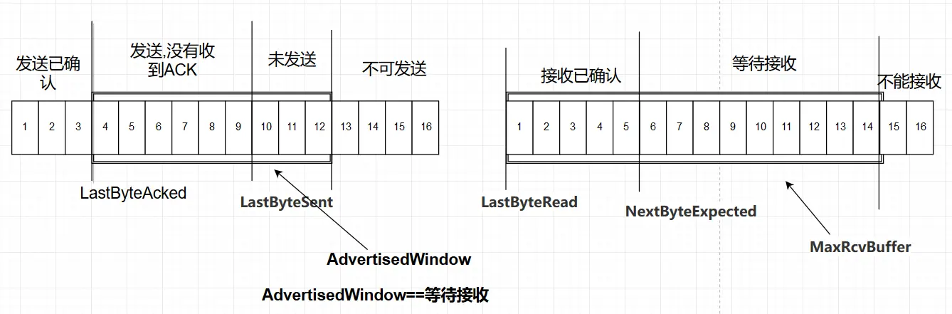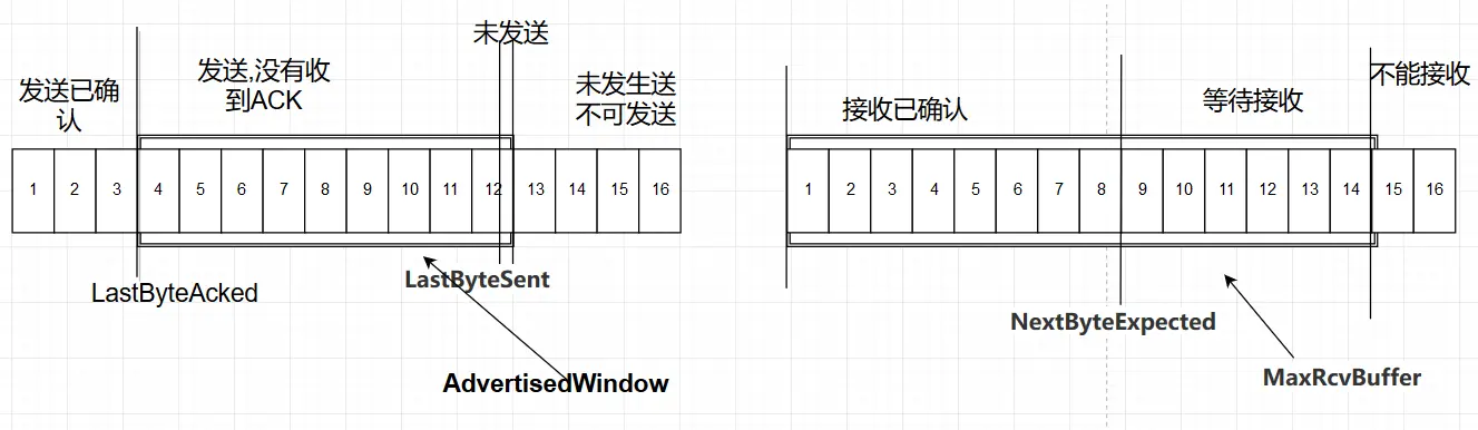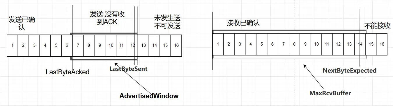 - 如果过了一段时间5、6、7都超时,重新发送,接收端发现5发送过了,直接丢弃5;6的ack收到了,7又丢失了.