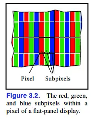 在颜色控制上,一个像素被划分为三个独立控制的子像素,分别控制红绿蓝(RGB)。