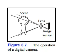 相机的镜头把场景的图像投影到传感器上,接着每个像素测量在之上的光能(light energy),最终用能够传达给输出设备的数字表示。