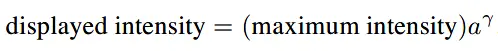 举个例子,比如γ值是2.0,α是像素值0.5。那么显示的强度便是最大可能强度的1/4,因为0.5^2 = 0.25。