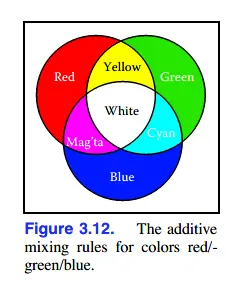 真实的RGB常常使用量化的形式(quantized form)表现,每一个颜色部分使用一个整型表示。最常用的大小是一个颜色一个字节,所以每一个颜色部分的整型大小范围为0~255。三个整型一共使用3个字节,也就是24bits。同时gamma矫正(gamma correction)也同样适用于RGB