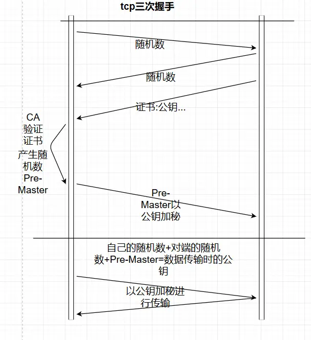 6客户端与服务端同时计算数据传输时的对称公钥;对称密钥=客户端的随机数+服务端的随机数+Pre-Master随机数