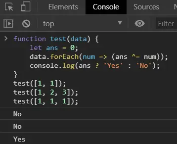 data.forEach(num => (ans ^= num));
