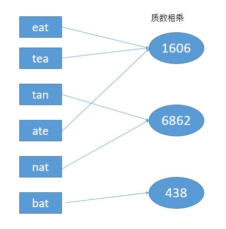 例如 abc ,就对应 'a' - 'a', 'b' - 'a', 'c' - 'a',即 0, 1, 2,也就是对应素数 2 3 5,然后相乘 2 * 3 * 5 = 30,就把 "abc" 映射到了 30。