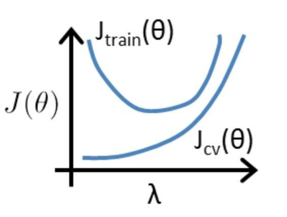 同样的需要找一个使得代价函数在训练集和交叉验证集上平衡的。
