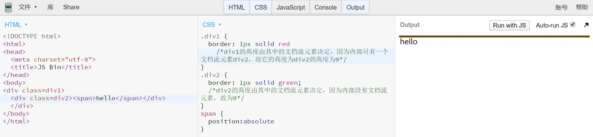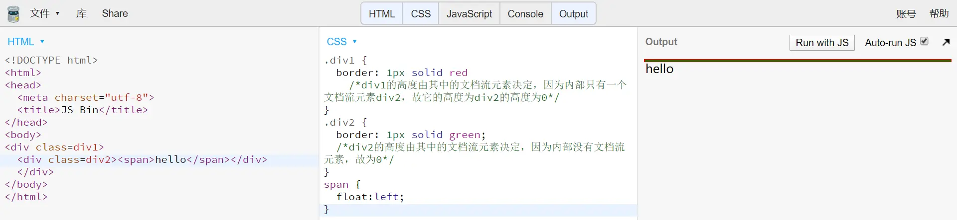 有些元素可以不在文档流中,这时block元素高度就不会把这些元素计入其中。