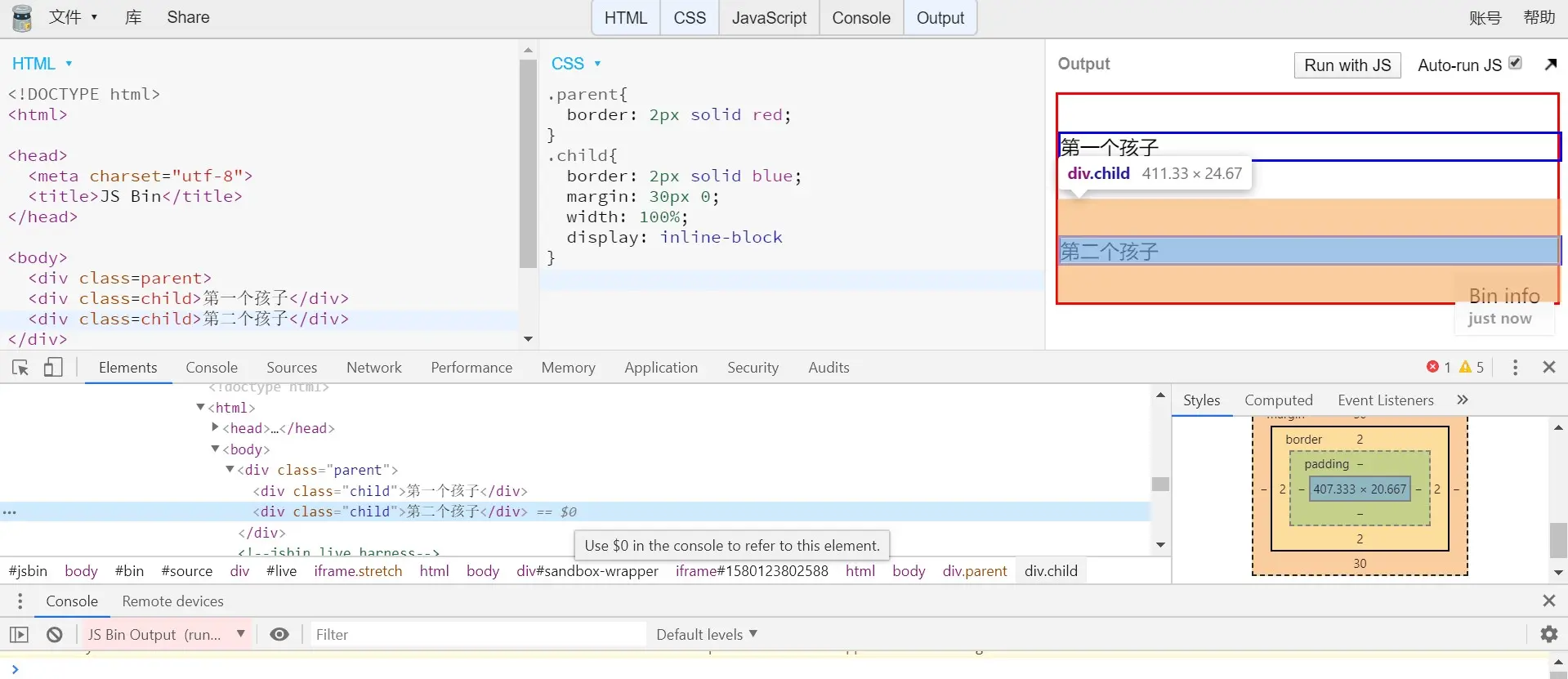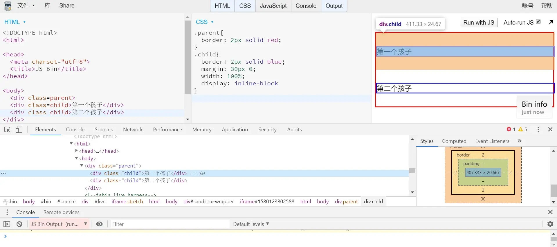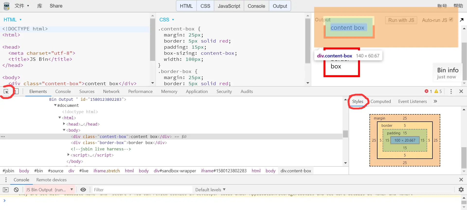 3.可从开发者工具中看到盒模型的尺寸