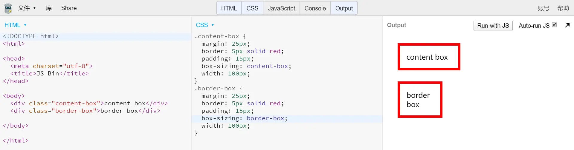 (2)border-box (边框盒)