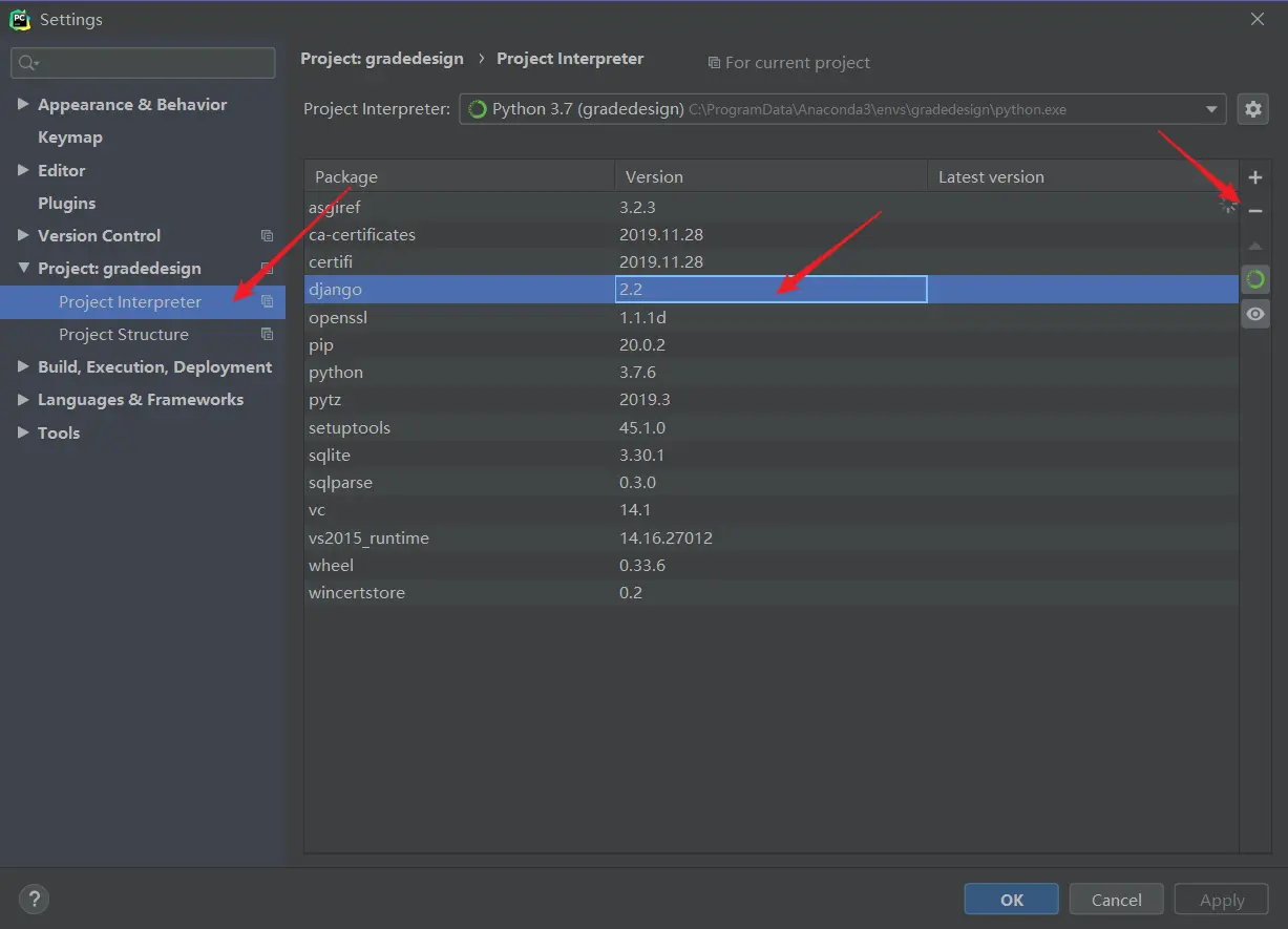 虽然现在 Django 已经是 3.0 版本了,但是我想用的是 Python3.7 + Django 2.2 版本进行项目搭建。默认安装的是最新版的 Django 版本,于是我需要卸载 Django 3.0 版本,再重新安装指定版本的 Django 2.2 。