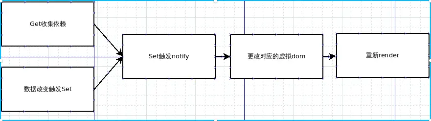 每当重新赋值值就会调用set方法修改value的值,然后set方法调用渲染方法重新渲染视图。