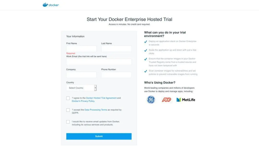 这里忍不住想给Docker的设计团队疯狂打电话,它的官网是我目前见到的所有开发工具网站中视觉效果最棒,交互最流畅的一个。整体给人一种非常清新快速的感觉,很契合这个工具的功能和理念,第一眼就爱上了,像极了爱情。