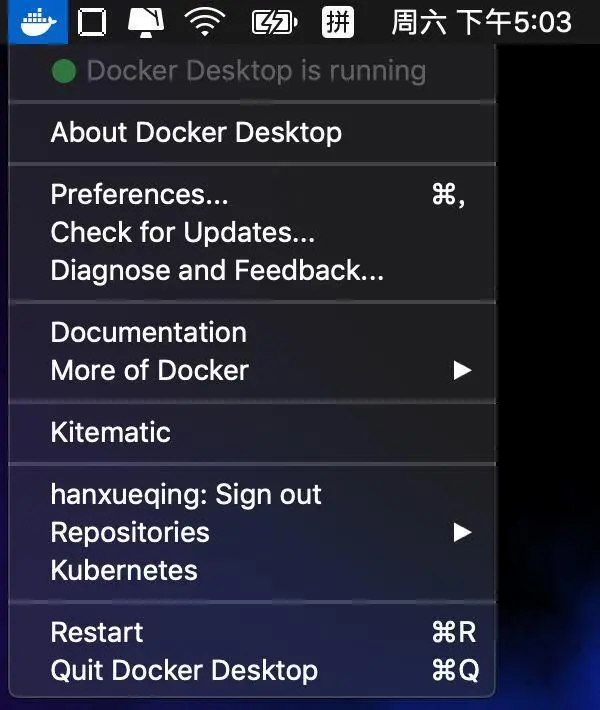 右键点击桌面顶栏的 docker 图标,选择 Preferences ,在 Daemon 标签(Docker 17.03 之前版本为 Advanced 标签)下的 Registry mirrors 列表中将