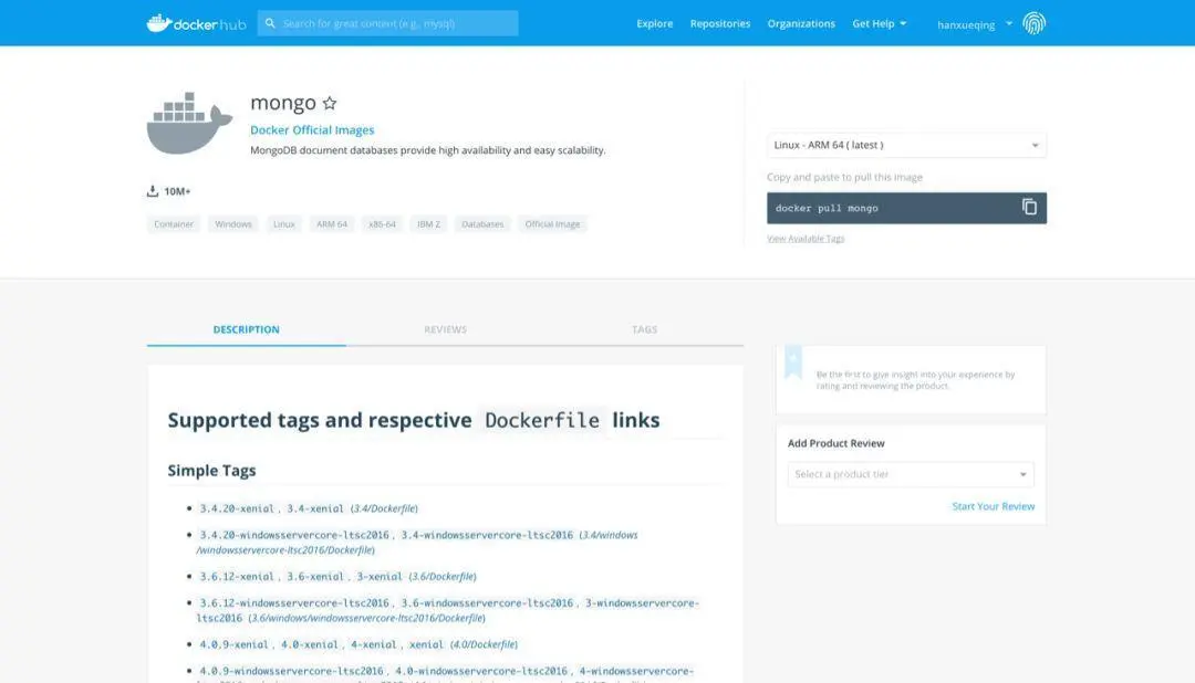 mySQL数据库最新版本会有一些功能不稳定的情况,建议不要安装最新版本,而mongoDB不会,所以直接执行docker pull mongo下载就可以了。