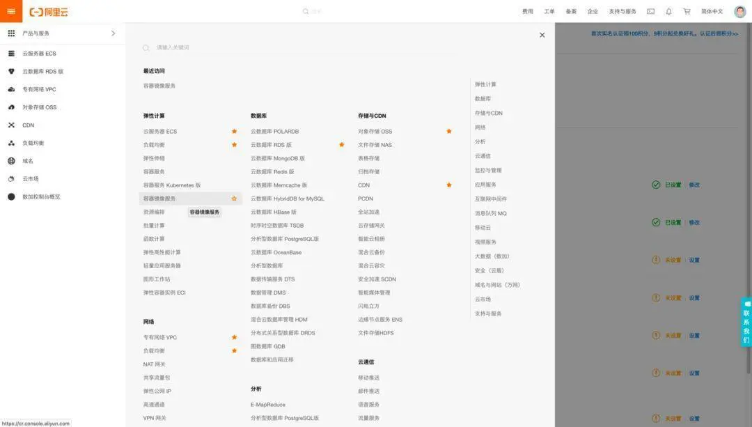 在左上角汉堡包导航中找到产品与服务——弹性计算——容器镜像服务。