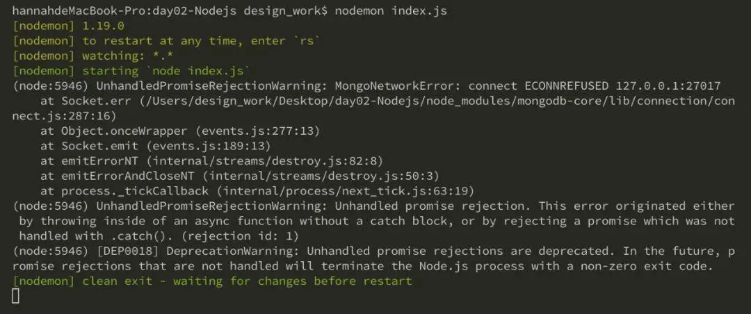 如果你不暴露27017的端口号在node.js中连接的时候会报这个错误,提示你找不到这个端口号。