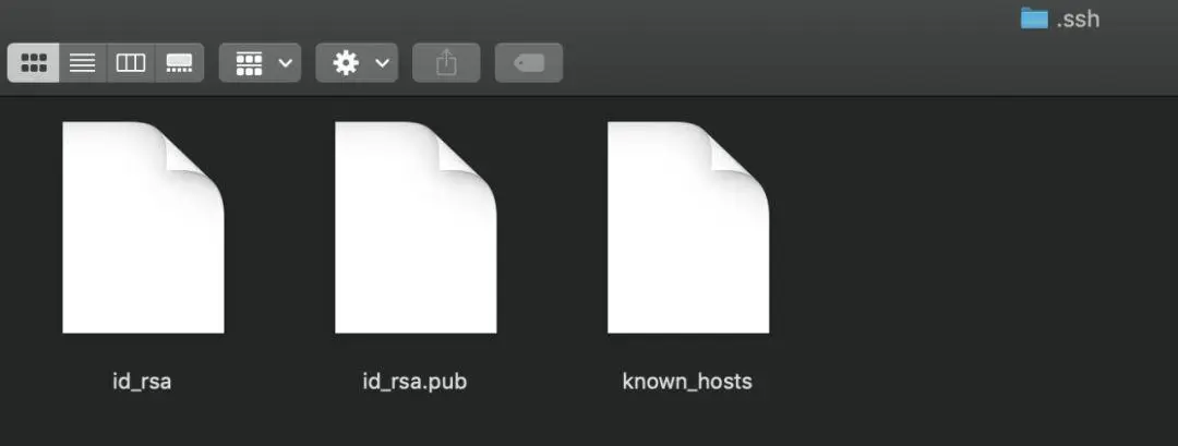 首先在本地找到.ssh目录,mac用户使用快捷键:shift+command+G输入***~/.ssh***快速查找。查看目录下有没有id_rsa(私钥)和id_rsa.pub(公钥)这两个文件,如果没有,可以在终端中运行***ssh-keygen -t rsa -C “你的github邮箱"***来生成ssh Key。