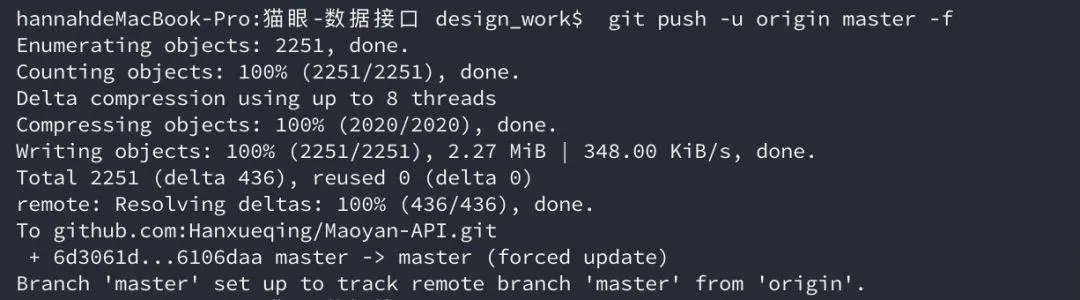 在本地执行完以上操作后就可以终端中出现提交成功的命令。