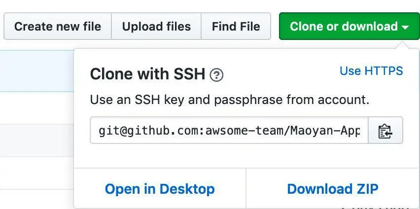 **Clone or download :**提供克隆、下载的https协议或者SSH协议