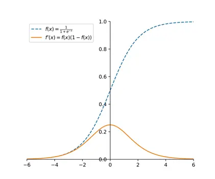 网络的输入输出表达式一般表示为: ,其中 F 是 sigmoid 函数,如下图所示,蓝色虚线是 sigmoid 函数,橙色曲线是 sigmoid 函数的导数。从中可以看出,sigmoid 函数在两端容易使导数为 0,而且随着网络深度的加深,这种影响程度更严重,会导致训练速度变慢。