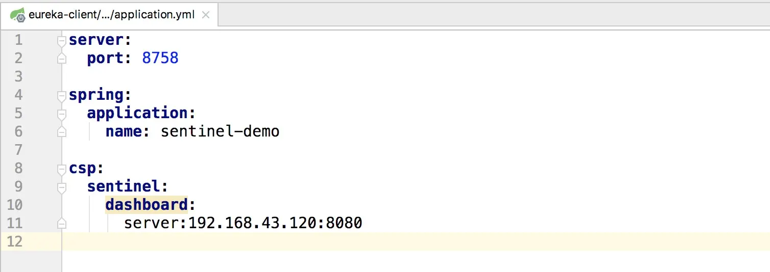 启动时加入 JVM 参数 -Dcsp.sentinel.dashboard.server=consoleIp:port。这里我把启动参数添加在Idea Configuration下的VM options中:-Dcsp.sentinel.dashboard.server=192.168.43.120:8080