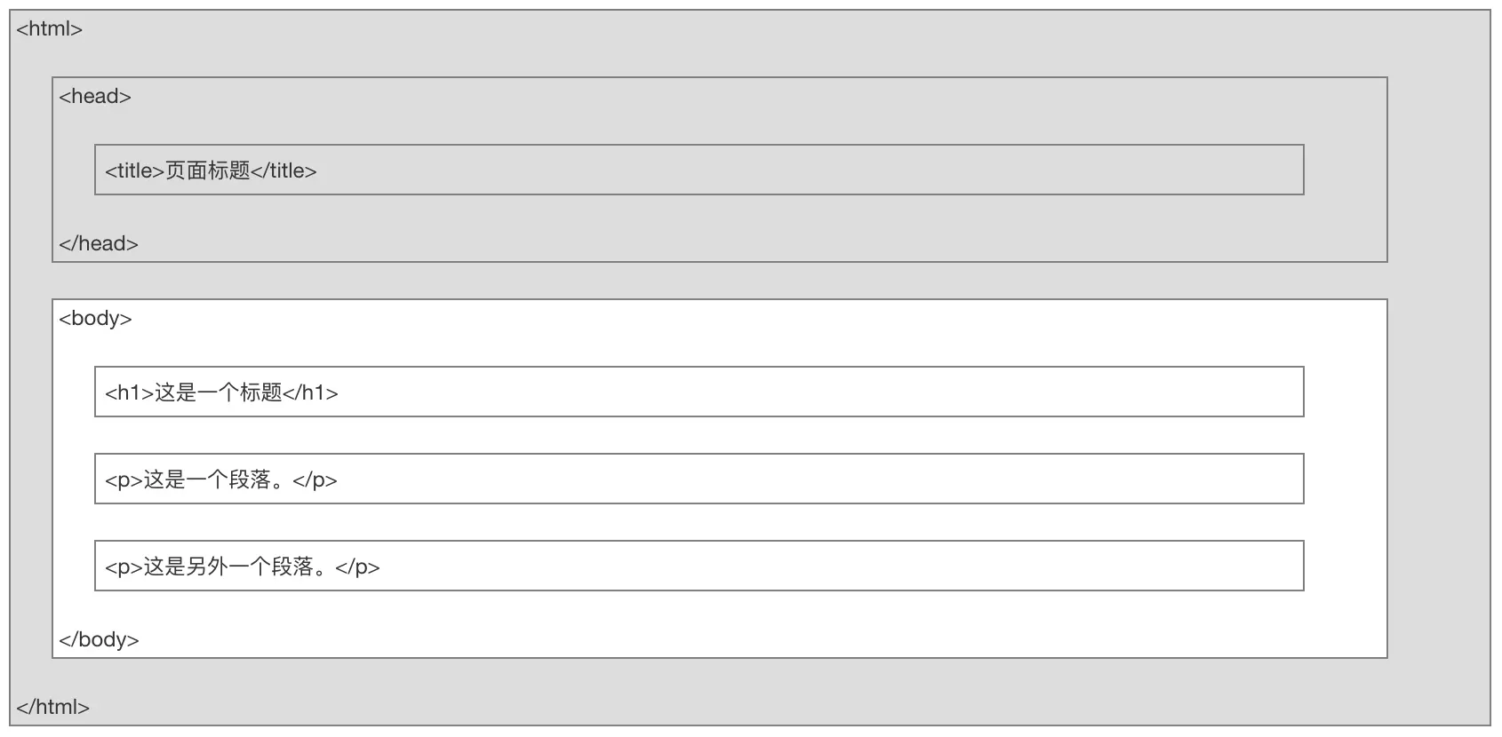 <html></html>: <html>元素包含了整个页面的内容,所以它是HTML文档的根元素。<html>元素包含<head>元素和<body>元素。
