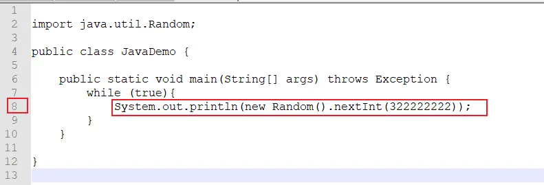 表示是在代码的JavaDemo的第八行。也就是下图的位置: