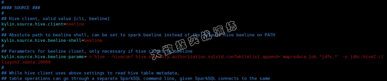 kylin.source.hive.beeline-params=-n hive --hiveconf hive.security.authorization.sqlstd.confwhitelist.append='mapreduce.job.*|dfs.*' -u jdbc:hive2://liuyzh2.xdata:10000