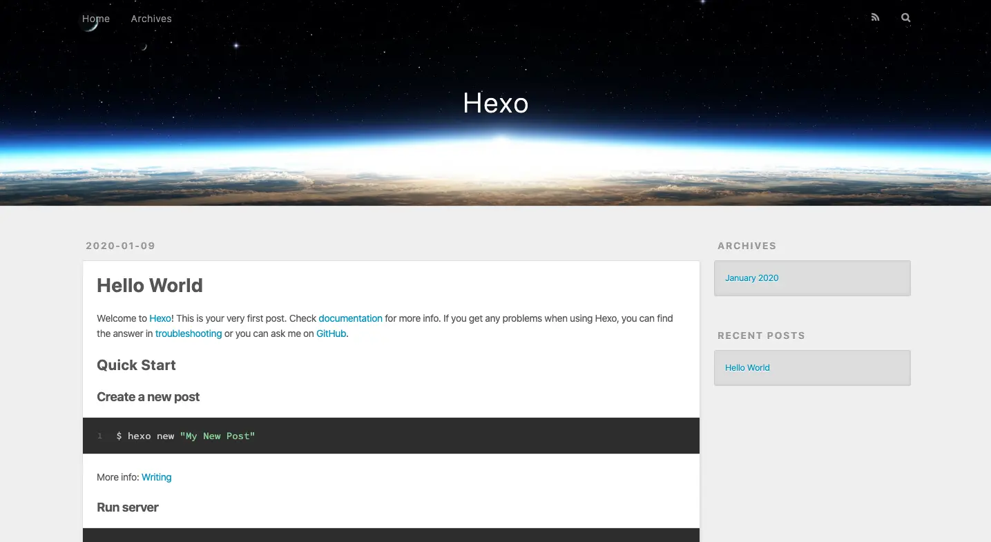 到此整个搭建过程就结束了,如有不当或有问题,还请指正。 更换主题以及主题优化见下一篇博客: hexo之主题优化篇