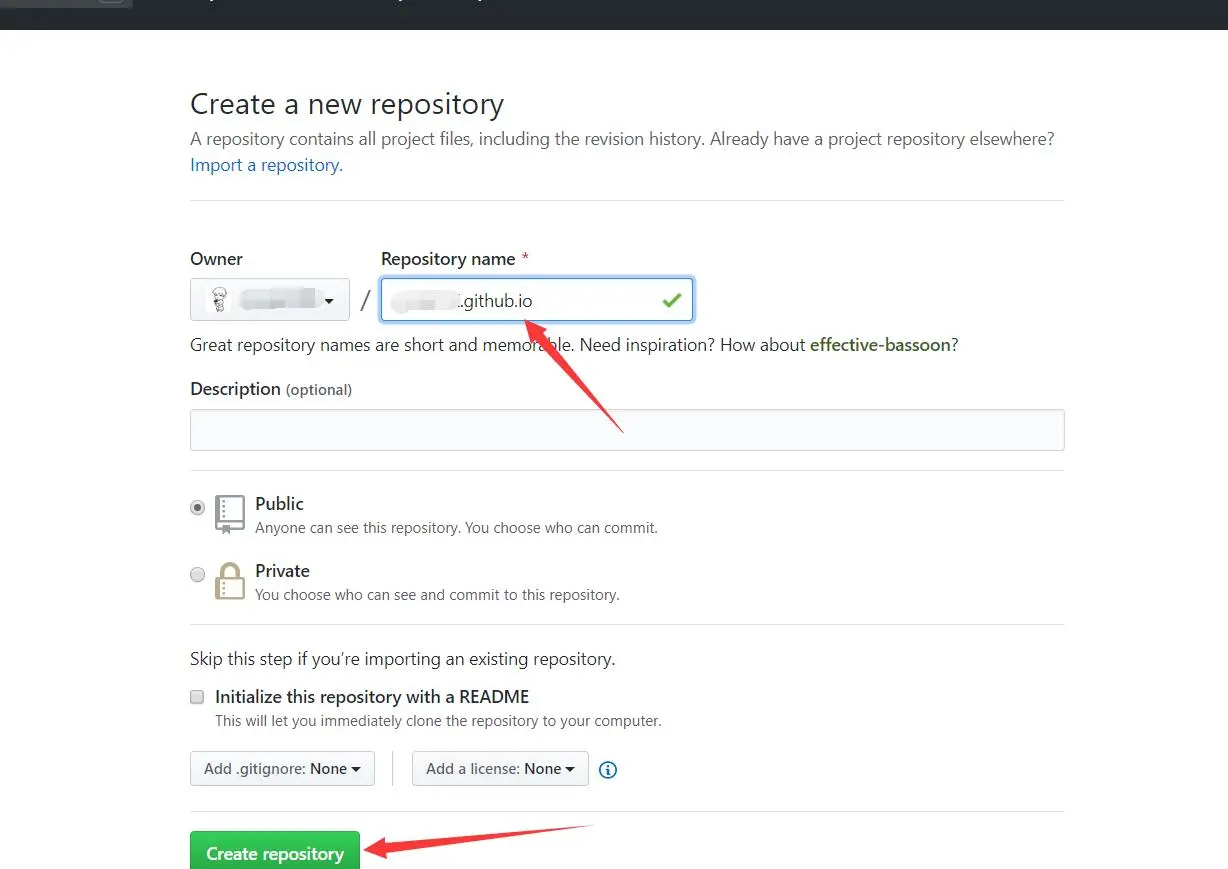 1)在 github 上新建一个名为 yourname.github.io 的仓库;