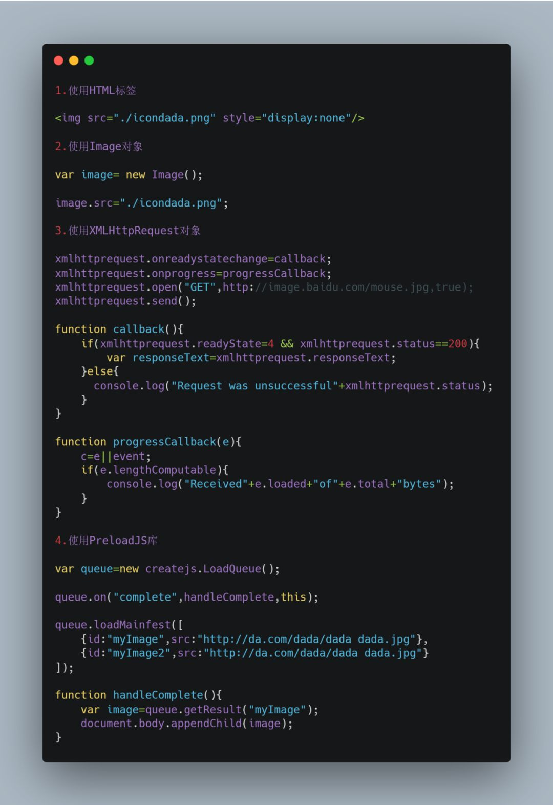 预加载简单来说就是将所有所需的资源提前请求加载到本地,这样需要用到时就可以直接从缓存中取资源了。