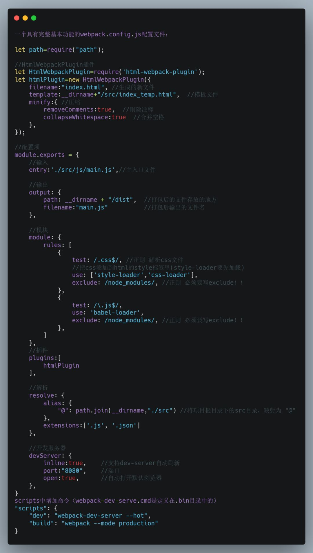 在webpack中接入UglifyJS需要通过插件的形式,UgllifyJsPlugin是比较常用的插件,通过在webpack的配置文件webpack.config.js中加入以下代码即可。