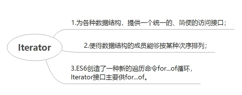 Iterator遍历器是一种接口,为各种不同的数据结构提供统一的访问机制,任何数据结构只要部署Iterator接口,就可以完成遍历操作。