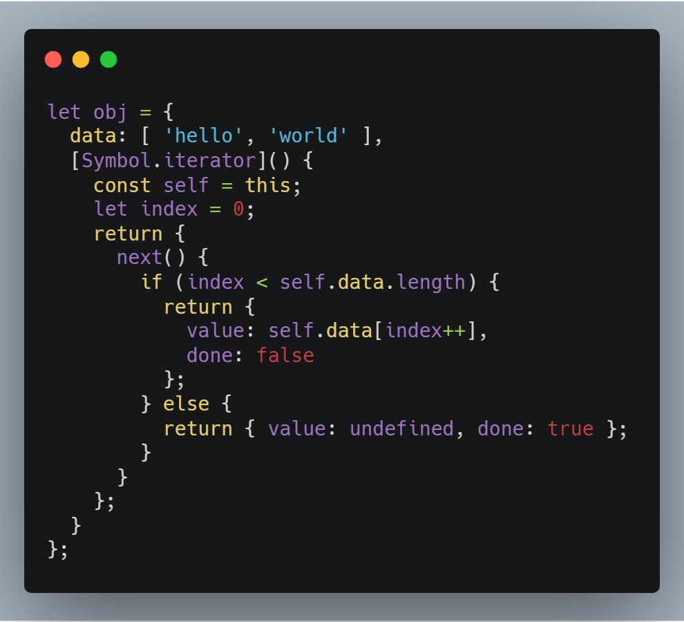 它们原型中都有一个symbol.iterator方法,通过调用symbol.iterator方法来获取默认迭代器。