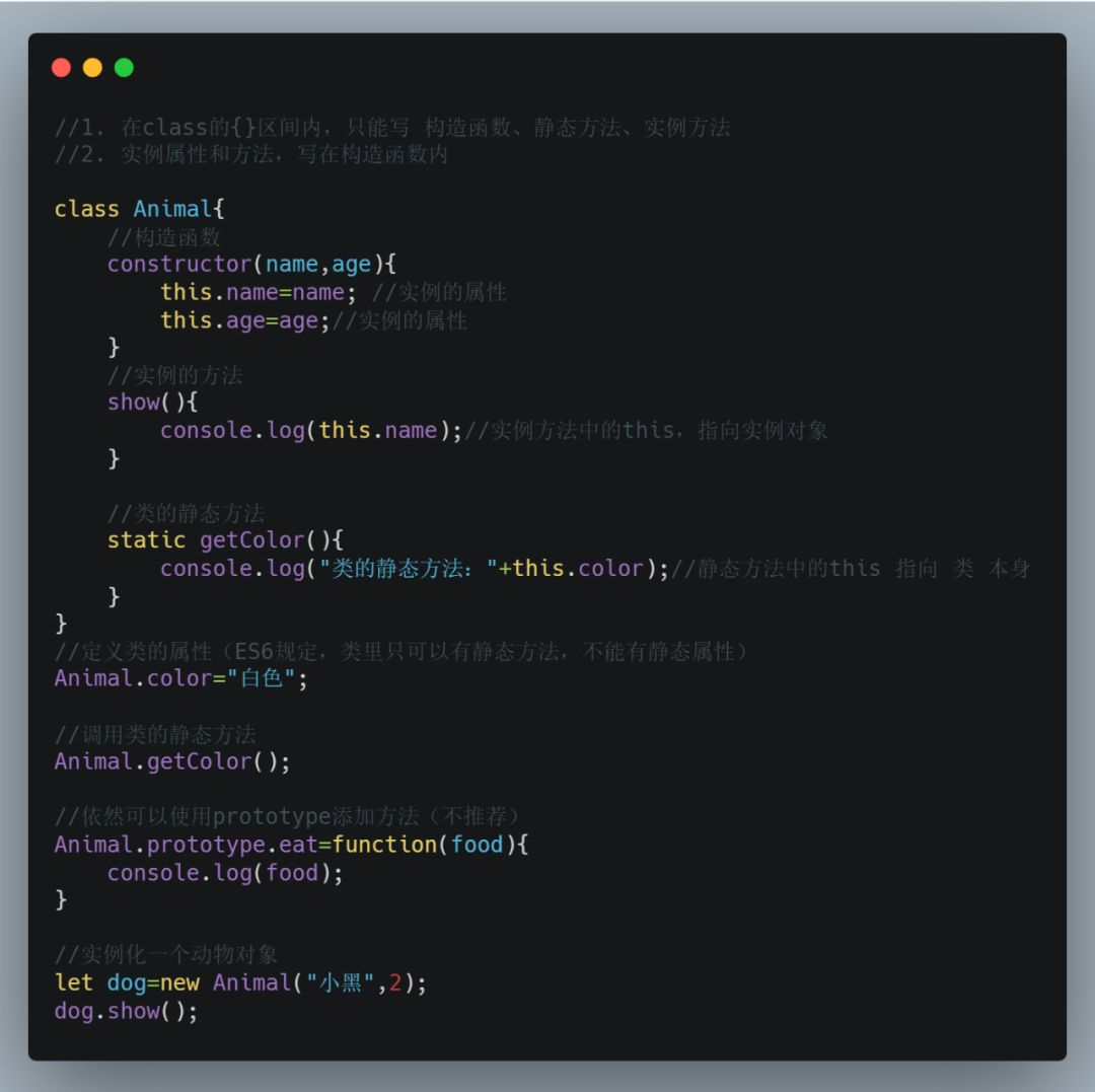 Class,在传统的JavaScript中只有对象,没有类的概念,它是基于原型的面向对象语言,原型对象特点就是将自身的属性共享给新对象。我们可以通过class关键字可以定义类。