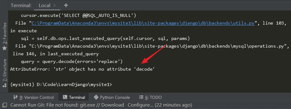 可能也会遇到另一个错,把 operations.py 同级的一个名为 base.py 的文件 35、36 这两行注释掉: